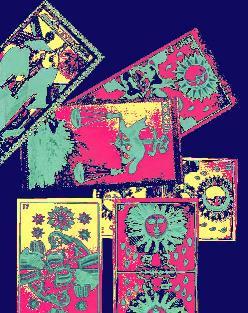 TAROT TOOLSTAROT MEDITATIONS Meditation is an often over looked benefit of the tarot. The 78 cards of the Tarot are based on a perceived order in nature and in the lives of humankind. Its seemingly simple pictures are in truth a complex system of symbols that speak to the subconscious of us all. Because of the this link to the subconscious the Tarot can be put to good use by anyone even if they have no interest or belief in the occult sciences. The cards are like a book that can tell stories that very not only with each of the cards, there number and the order they lay out in, but with each person reading them as well. A FEW SIMPLE EXERCISES Meditation has gifts for all who seek its treasures. There are hundreds of wonderful books on meditation that will be most helpful in making contact with one's inner self, open your mind etc. seeking them out my may be time well spent. If you do not yet perform any type of meditation I hope you may find the simple techniques below of some of help. I relate them to you only as a starting point and as a specific methodology to the Tarot. First a quite time, in a quite place is a most. If you wish you can play soft music (without human voices of any type is best), at a low volume. Likewise the light levels should be low. This is not just to set a mood; the rates of vibration of light are very high and can be disruptive. Candles and a low room light are ideal in most cases. Burning a little incense is fine as well. Sit at a table and have your deck ready on the table, ideally on a silk or linen scarf. Light the candle(s) and incense and say a short prayer for truth and guidance. With you feet apart, flat on the floor with toes pointing outward slightly, hand and forearms palms facing downward. Breathe in and out deeply, slowly and evenly though the nose as you slowly bring a wave of relaxation up from your feet to your head. Don't rush, let it happen, don't try to make it happen. After you have relaxed your body keep up the same breathing pace till you know its time to relax your breathing as well .in your minds eye see a white light forming above your head when the light becomes strong let it cover you remain in the light till you know its time to handle the cards; again you'll just know. Now move to the exercises below... 1. Separate the 22 cards of the major arcana .Lay them out before you will find yourself drawn to one of the cards, pull in out and set it aside. Do this 3 times and turn over the extra cards and set them aside. Now take each of the picked cards in turn Keep the others turned over for now. Meditate on that card, how dose it make you feel, what parts of the cards are drawing you to deal with them, what meanings dose it have for you at face value then reach deeper. Then do the same with take each of the picked cards in turn. Again don't rush, let it happen, don't try to make it happen. 2. Now turn over all three cards try a putting them together in different orders & shapes. Keep in mind there may be more one way that will have meaning to you. 3. Both the above exercises can be preformed with the full deck and with one to ten or more cards. Picking the cards at random as you would for a reading, but done with the meditation mind set can also be productive. 4. The cards are a useful aid for guided meditations. Pull those cards that you feel best speak to your needs and the issues you wish to come to grips with and lay them out in the order seems best. As you look at the card see the good out come as some that has happen already. Make this vision as real as possible. Keeping a logbook is a very good idea. You can use it to both make notes of all your meditations both open and guided. Be as positive in writing your notes as you are in meditation. Say a prayer of thanks when your meditations are complete. GETTING THE MOST FROM A READING Having someone else read for you can be very illuminating even if you're highly skilled in the use of the Tarot. You rightfully feel you're to close to read your own cards. Whatever the level of your skills it's a good idea to make note of the cards and the order they happened to fall in your logbook. Later when you have time lay out the cards again using your own deck and meditate on them. Write any thoughts or feelings in your log. An unskilled person may easily misjudge the face meanings of the cards and they should keep this in mind, but our inner feelings have value and may shed more light on a good reading then you may think. Indeed if nothing else meditating on a skillful reading may well make finding the best path to take much clearer to us. WRITERS |